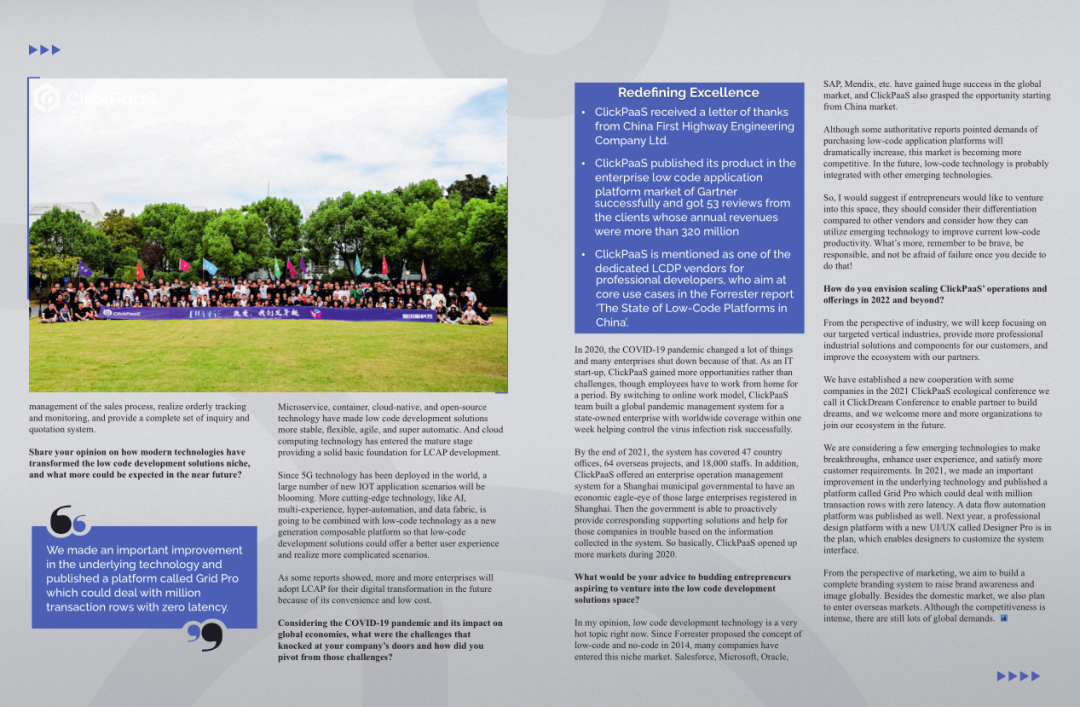 2022年年初,龙八国际官方网站入口入选外媒Insights Success低代码/无代码开发平台 Top10,创始人、CEO胡柏受邀接受专访并荣登封面人物,他与Insights Success的读者分享了龙八国际官方网站入口成立的初心、发展历程、当前的行业发展趋势以及他对公司未来的展望。